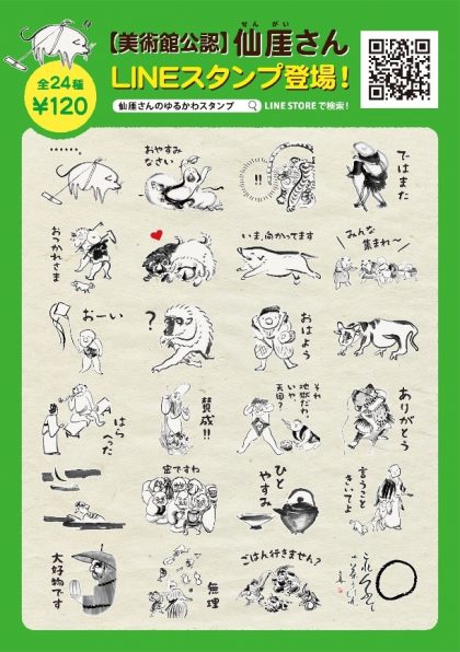 「博多の仙厓さん」でお馴染みの、日本で最初の禅寺である聖福寺の住職を務められた、仙厓義梵のゆるキャラちっくで可愛らしい作品がLINEスタンプになりました。しかも仙厓研究の第一人者で、福岡市美術館の総館長でもある中山総館長と、古美術担当のM学芸員に監修して頂いた大変豪華な仕様です。